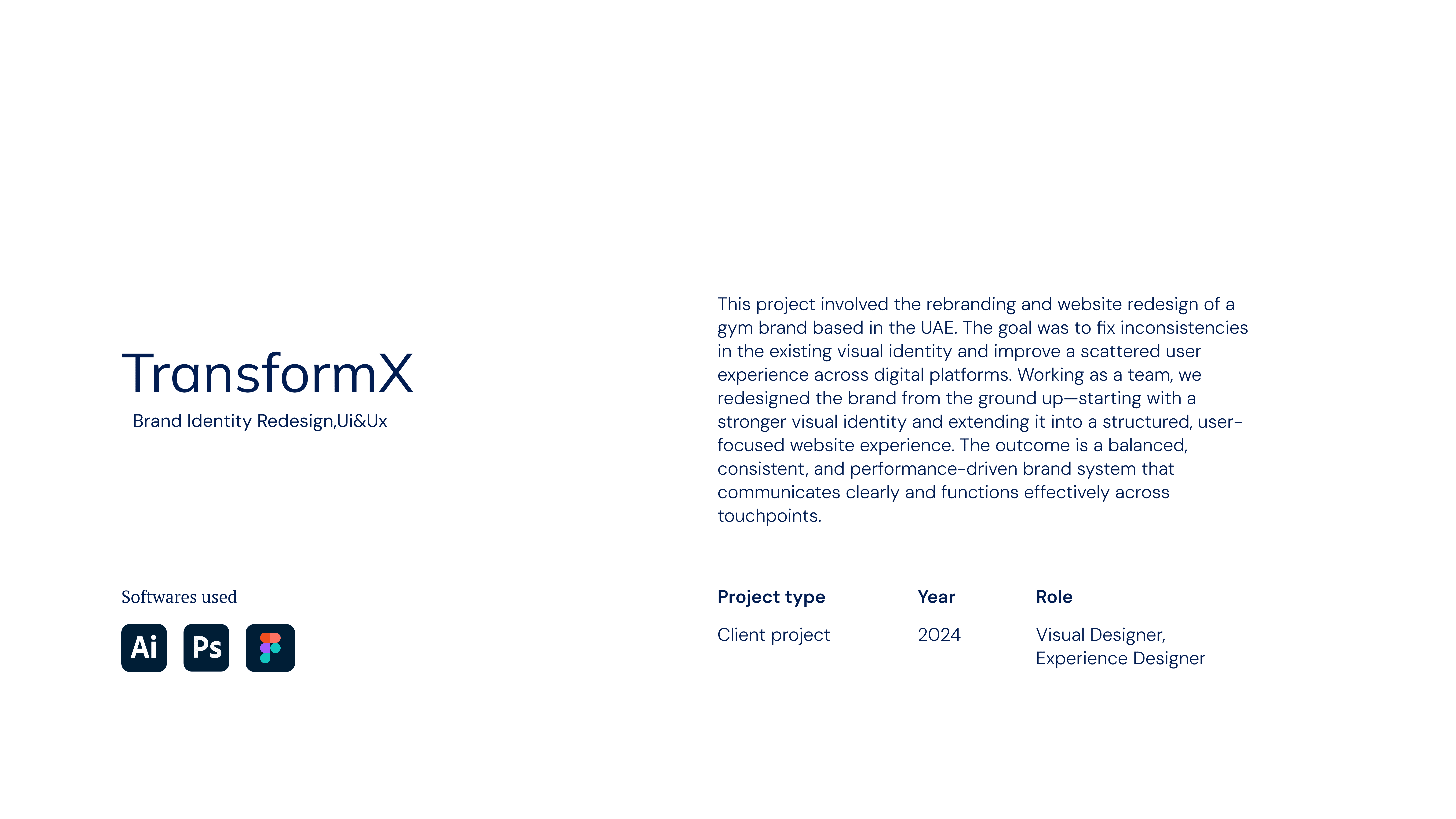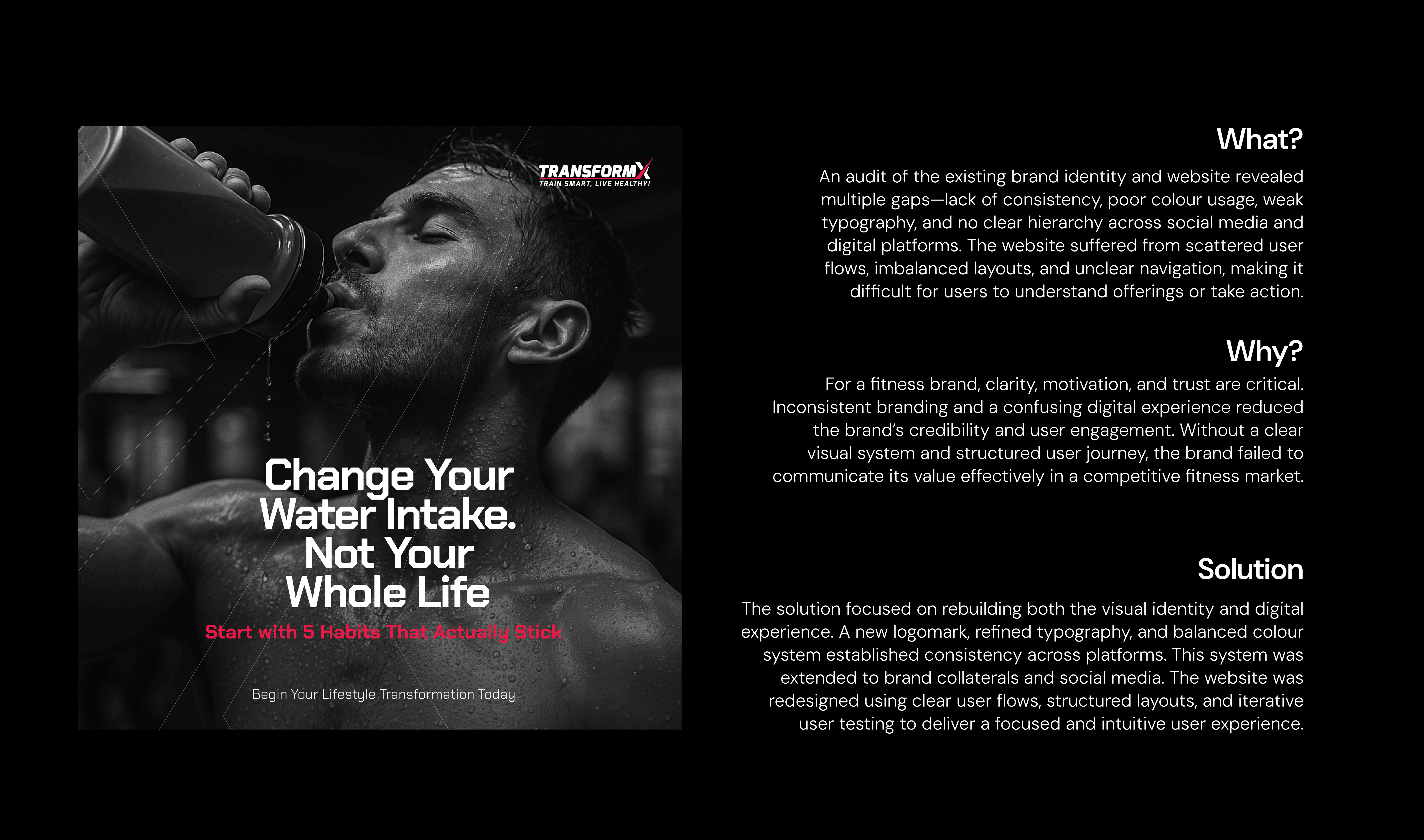 Collaborated with TransformX, a Dubai-based fitness brand, on a complete brand identity redesign, including website, social media, and marketing collaterals. The project focused on creating a bold and motivating visual system that reflects the brand’s core values of transformation, strength, and consistency.